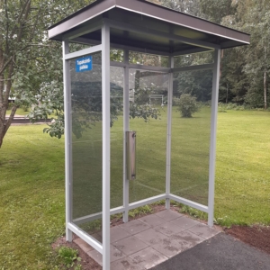 Taloyhtiön jokaisen talon läheisyydessä on kuvan mukaiset tupakointikatokset.